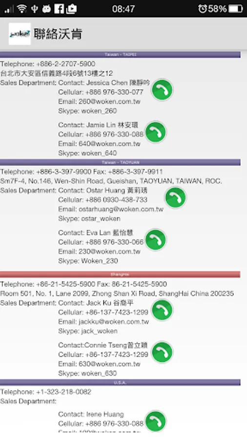 自1999年沃肯(Woken Technology Inc.)成立於台灣龜山鄉,目前服務據點包含台灣龜山&台北,中國上海及美洲地區,沃肯科技 woken Technology Inc. 自許不只為一商譽良好之經銷代理商,並以服務為導向提供客戶技術支援,此能力也的確是沃肯最有價值的資產。對客戶來說,沃肯科技提供有效的外部資源服務、優良的產品與最好的價格加上專業技術支援與親切的服務。對全球夥伴廠商來說, 沃肯科技為他們拓展台灣市場的目的開啟了一扇大門,我們了解客戶與市場在哪並且知道如何服務他們。因此,我們的客戶、伙伴與沃肯皆可贏得市場