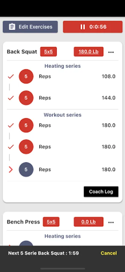- Previous Exercise Log: See how the previous time's exercise went in the current workout