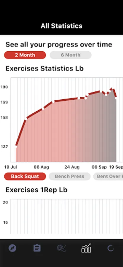 ✔ Graphs & tracker to view your progression of all the lifts and for body-weight