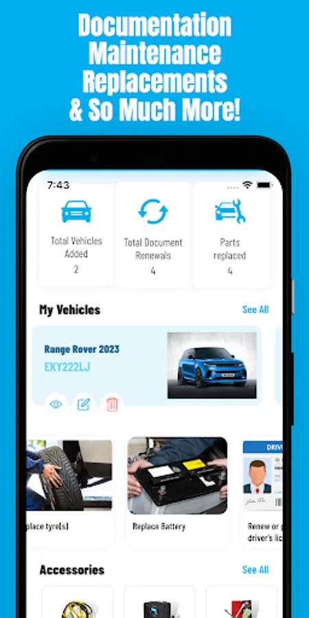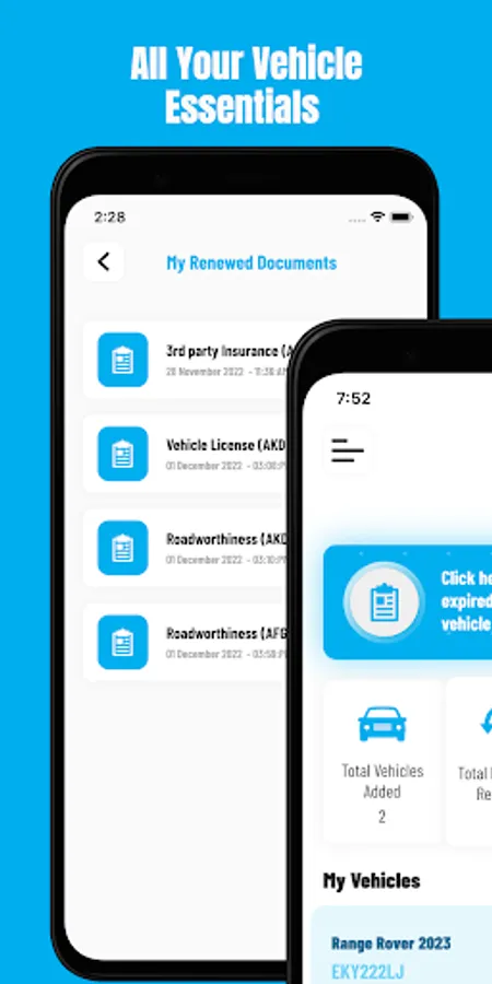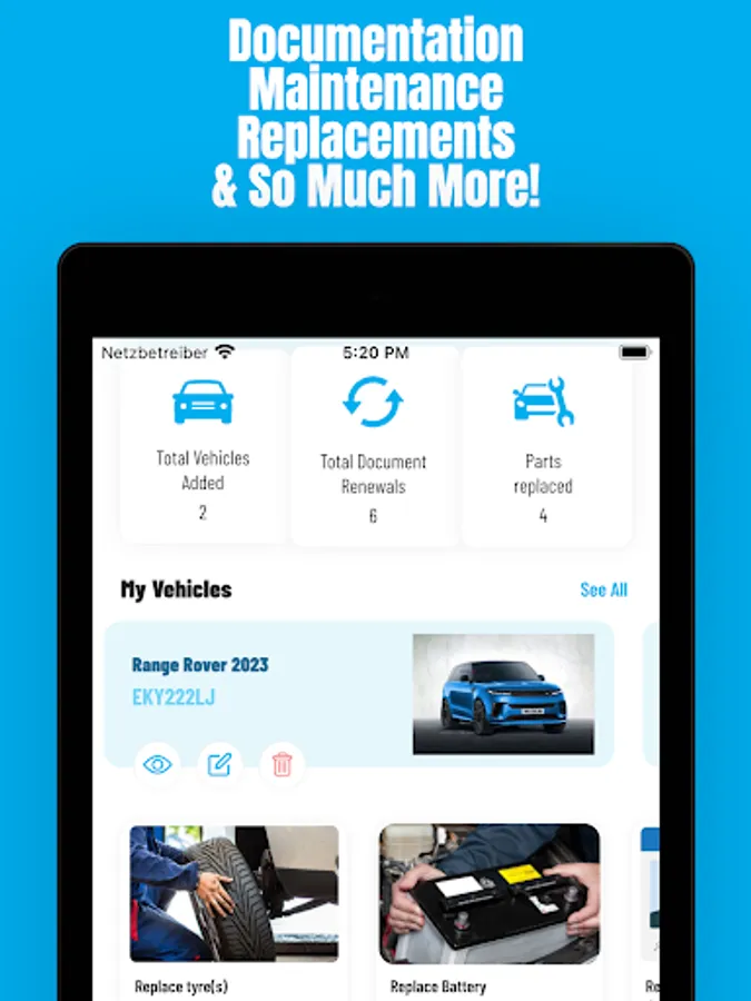 Using Vehycles App, you can now control and keep track of all your essential vehicle affairs: Documentation, Maintenance & Replacements.