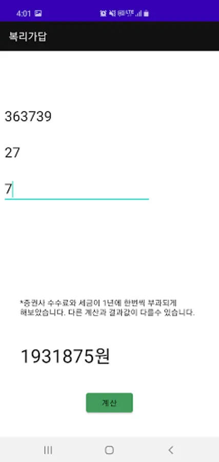 2. 증권수수료와 세금을 적용 해봤습니다.