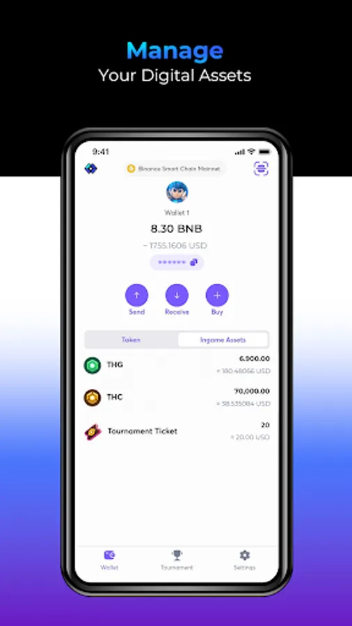 - Store BNB Chain (BNB) cryptocurrency token like THG, BNB, USDT,...