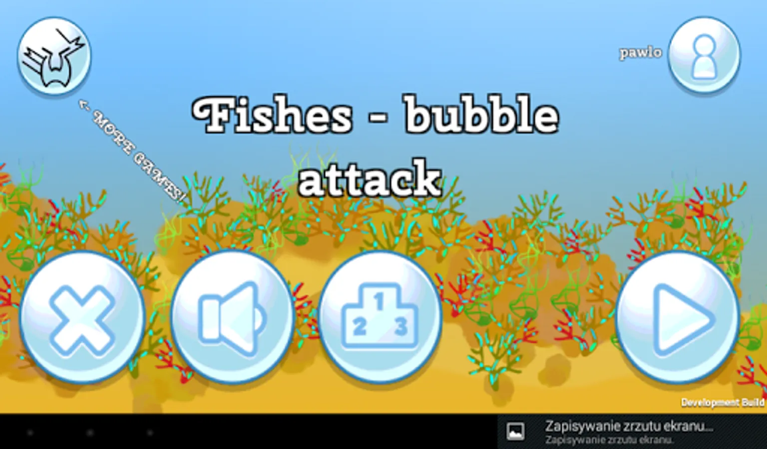 Small arcade game. You have bubble and must destruct all bad fishes moving from one side to another. In game you compete with other players. If you would be the best - play. In game available are 3 types of game : normal, shake and wave mode (last two to unlock).