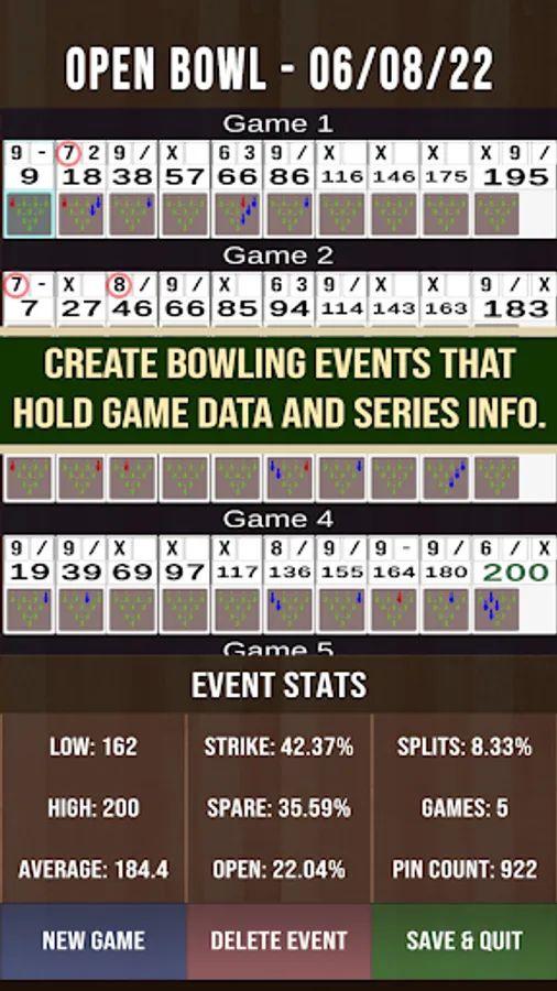Welcome to Bowling Score Keeper! Keep track of your bowling games and organize stat sheets based on date and event type. Every game that you play will track a wide range of data, which you can look at and filter in a variety of ways. This score keeping app was designed to have functionality and features to filter data exactly as you'd like. Want to view your stats for League between x date and x date but not view the stats from other bowling events? No problem. With advanced filtering and analytics, you can view your bowling shots, scores, stats, pin percentages, and so much more for the exact criteria that you want. You can do this in graph form, statistic/numerical form, or view. the stats for spare shots. Revisit score sheets at any point and the data will quickly adjust in this feature-heavy app.