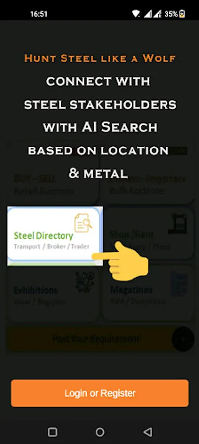Wolf of Steel for Steel Marketplace. Buy Sell of Steel Materials on Mobile Platform. we also provide bulk buying service. Buy, Sell & Rent of Machinery, Business Directory of Steel related business, Exhibition Center, News & Events.