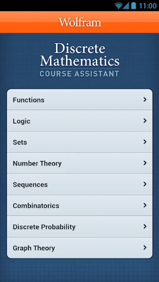 Taking discrete mathematics? Then you need the Wolfram Discrete Mathematics Course Assistant. This app for discrete math—from the world leader in math software--will help you work through your homework problems, ace your tests, and learn discrete math concepts. The Discrete Mathematics Course Assistant solves your specific discrete math problems on the fly, providing answers to a broad range of subjects.