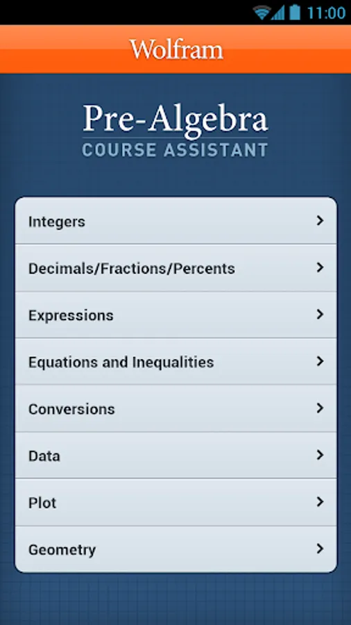Taking pre-algebra? Then you need the Wolfram Pre-Algebra Course Assistant. This definitive app for pre-algebra—from the world leader in math software—will help you work through your homework problems, ace your tests, and learn pre-algebra concepts. Forget canned examples! The Wolfram Pre-Algebra Course Assistant solves your specific pre-algebra problems on the fly.
