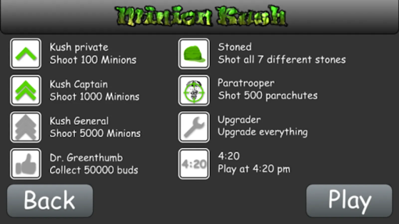 Explore your farmland and protect it from all those rushing minions who come to steal all your kush. Invest your buds later for upgrades like: