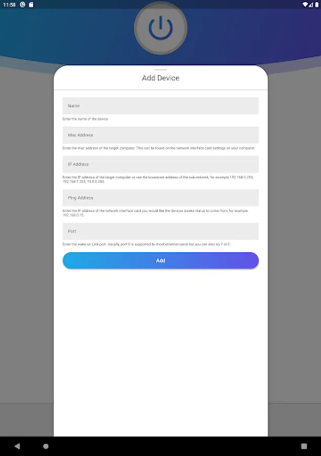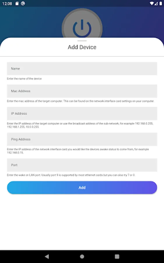 Simply add a device configuration inside the app, select the device you would like to start up and then press the power button and as long as your configuration is correct you can watch your computer start up.