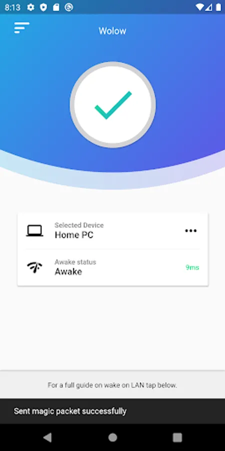Wake on LAN is a network protocol that is supported by the majority of Ethernet cards available. Before using the app ensure your computer is fully configured to work with the wake on LAN protocol. A guide on how to set up your computer can be found within the app at the bottom.
