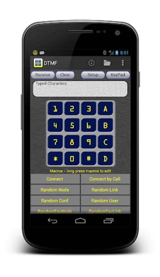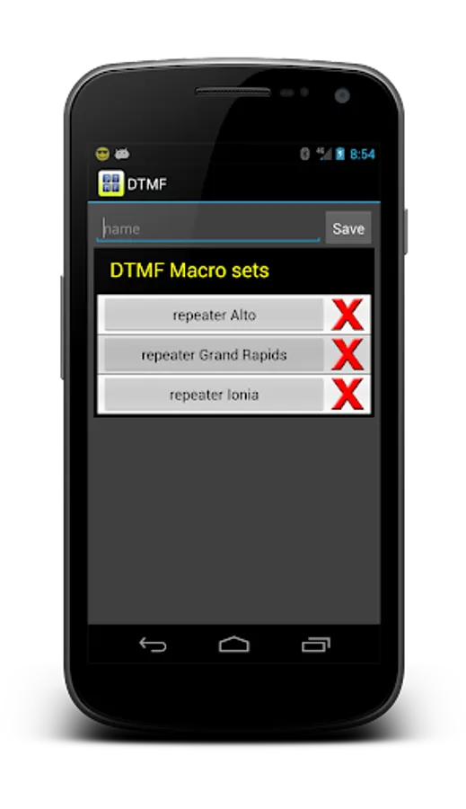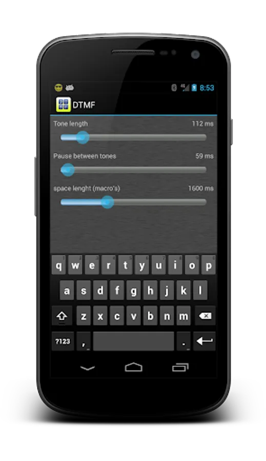 A total of 36 marco’s can be used to play phone numbers, ham radio auto patch numbers, amateur radio echolink id's any many more.The 36 macro's can be saved to the phones/tablets memory. This way a unlimited amount of macros can be used. The DTMF tone length and the pause between the tones can be adjusted.