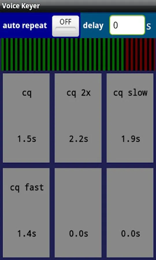 Voice Keyer is an audio recorder tool to record and play back messages. The messages are easily accessible though 6 buttons. A long click on a button will record a message and a normal click will play it back.
