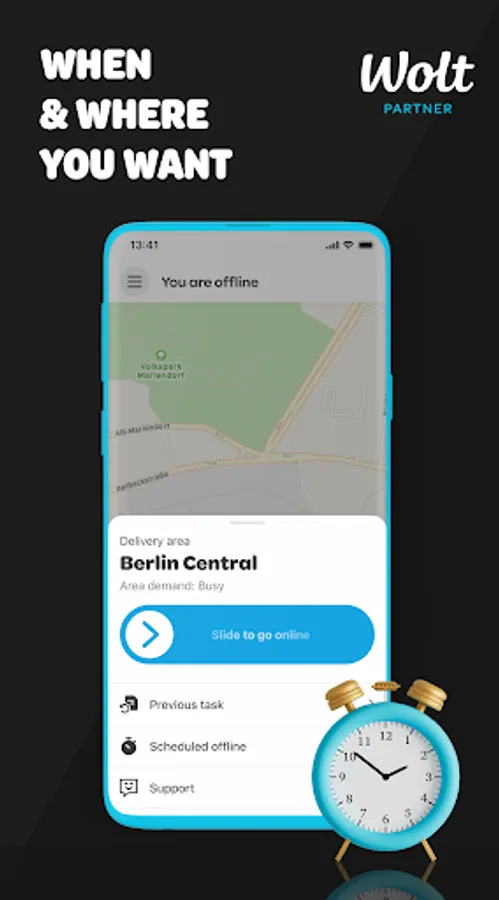 Deliver in the evenings, for a few hours during lunches – or whenever you feel like it. The app makes your life with Wolt easy. It gives you clear live updates on where you can pick up your next deliveries and how much money you’ve earned.
