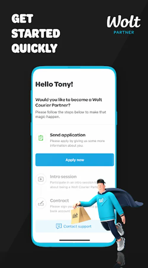 As a Wolt Courier Partner, you earn money by delivering food & more from local businesses to people’s homes. Choose your own hours and enjoy the freedom!