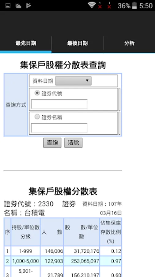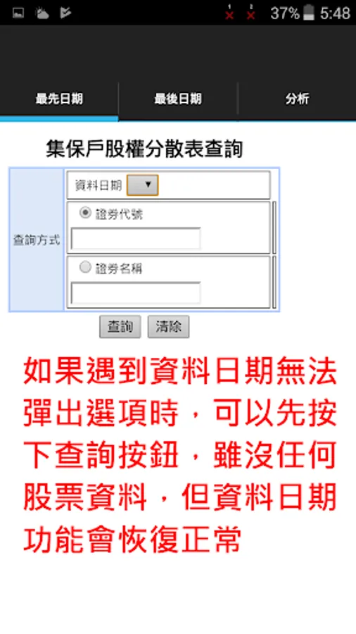1. In the [first date] page to enter a stock number / name, and select the first date.