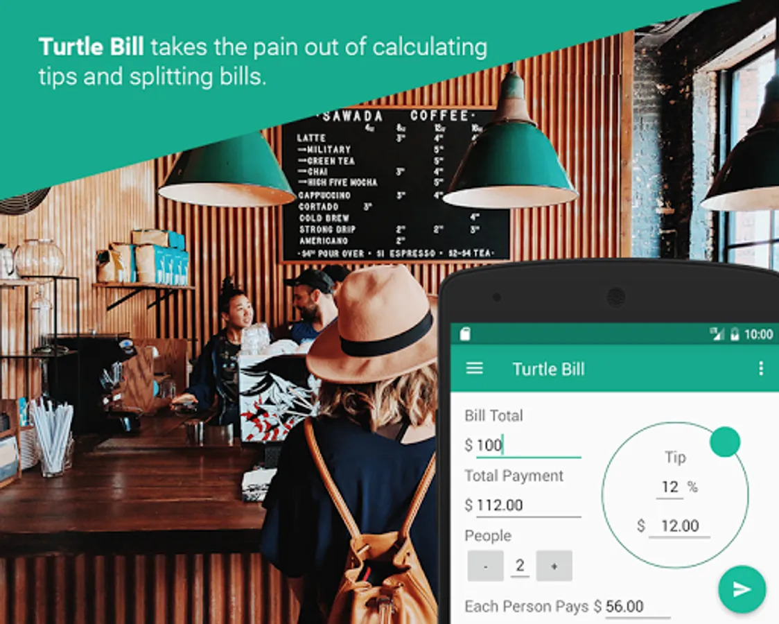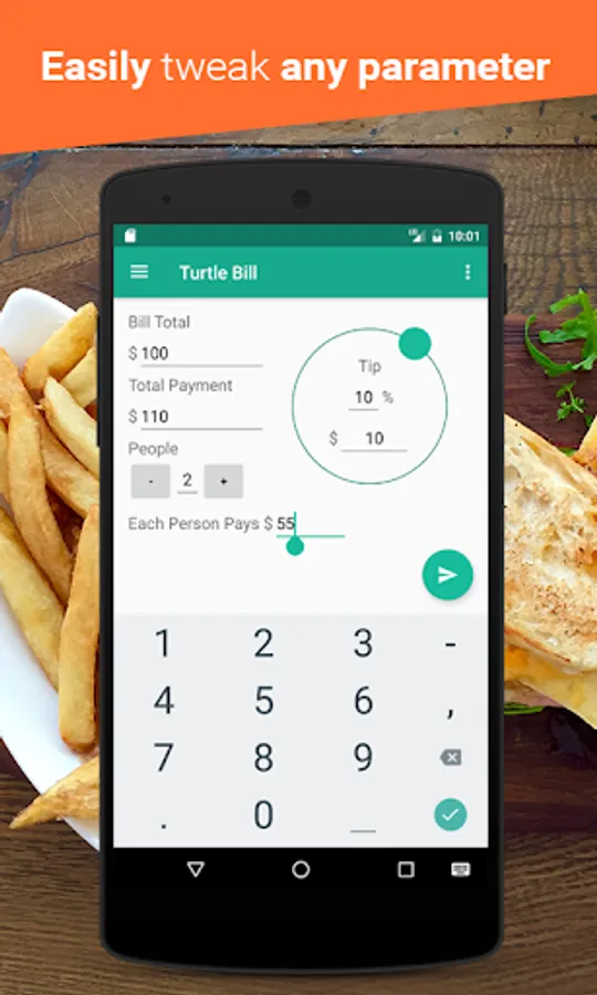 Tweak any parameters and watch everything update as you type! When you're done, "share the bill" with friends to allow them to see how you've calculated the tip and split the bill.