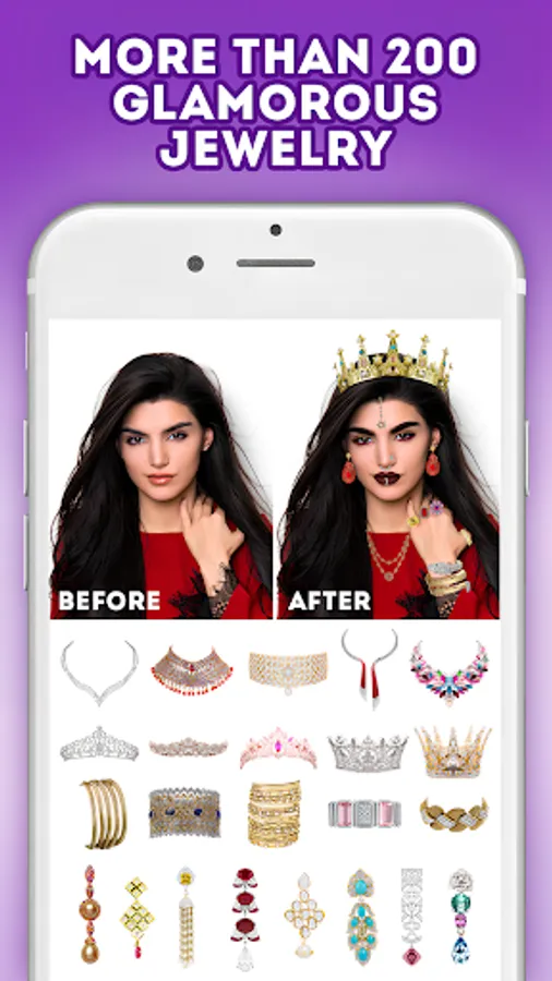 👑 Women Jewelry is very easy! Add jewellery on photo in 5 seconds!