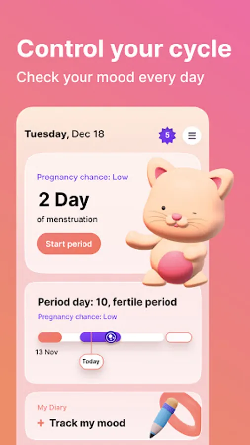 The main advantage of the program is a minimalistic and intuitive interface. Here it is clearly shown when you will have menstruation, fertility window, or PMS. You can note how plentiful your periods were and how soundly you slept. You can also set up notifications so as not to miss menstruation, PMS, or breast self-examination.