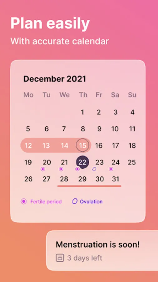 The app will remind you when the next period comes. It will also remind you of the approach to ovulation or that you need to drink more water!