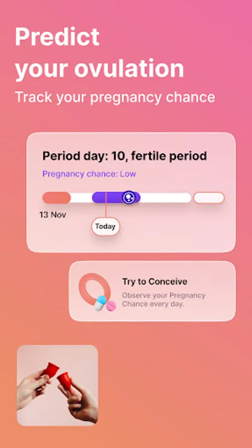 Also, for greater accuracy, you can take a survey about your cycle, find out more accurate forecasts of upcoming monthly periods and get personal advice.