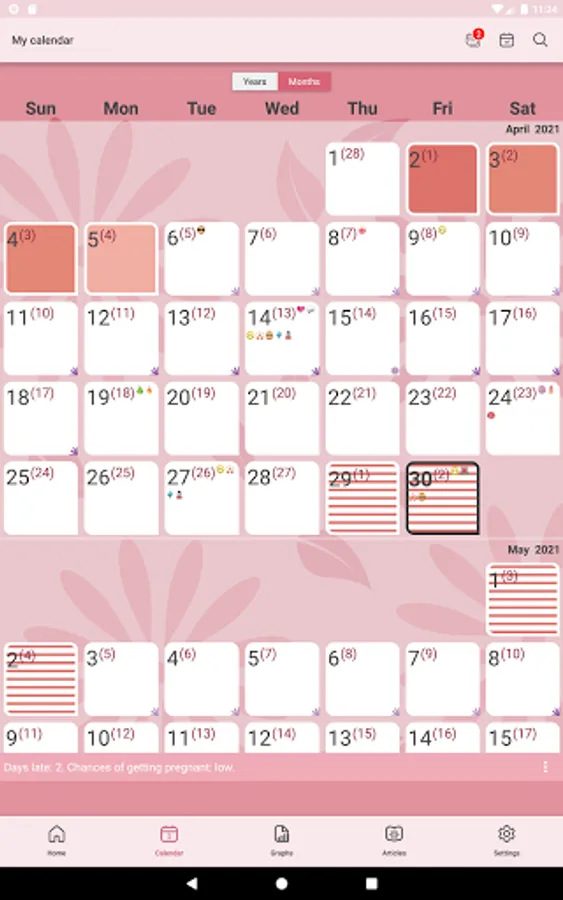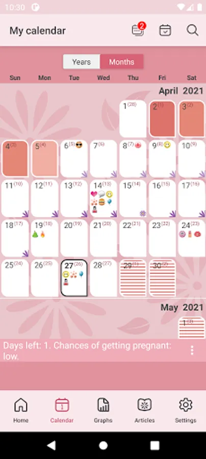 * You will see the probability percentage of your fertile days. This will allow you plan much better or to prevent pregnancy.