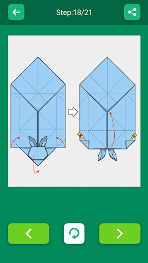 We tried to make phased origami lessons in this application understandable and easy to repeat for all age groups. However, if you have difficulty folding the paper or understanding the steps, then try starting the instruction over. Never give up. This should help you! If you wish, you can write us a review or suggestion, we read all the comments and try to quickly respond to them.