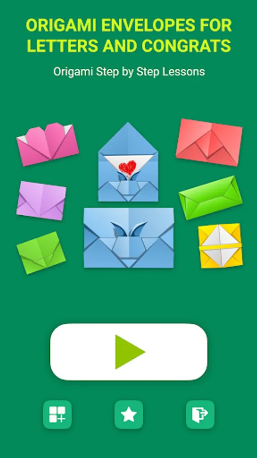 Want to learn how to make beautiful origami paper envelopes for letters, congratulations or gifts? If so, then you should like this app with step-by-step origami tutorials. In this application, you will find schemes and detailed lessons on creating origami envelopes of various kinds.