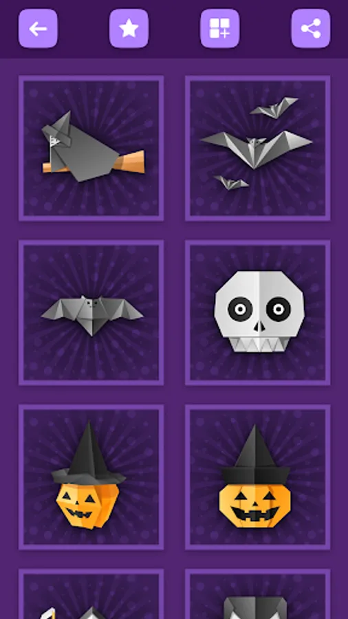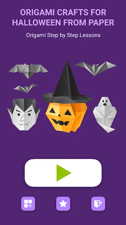 Want to learn how to make paper crafts origami for Halloween?If yes, then this application, perhaps you should like it.Here you will find step by step schemes and tutorials on creating various origami for Halloween: a bat, a pumpkin, a ghost , and others.