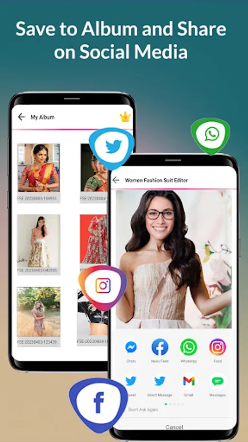 Ignite your imagination and add a personal touch to your women's fashion photos using our Fashionable Women Fashion Suit Photo Editor. Moreover, unleash your creativity by superimposing custom text – whether it's thoughts, captions, or spotlighting intricate fashion details. Discover the prowess of our Women's Fashion Suit Photo Editor, complemented by seamless social sharing on WhatsApp, Instagram, and beyond.