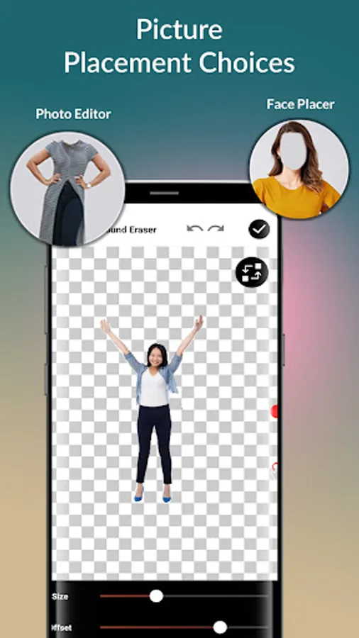 Are you tired of endlessly searching for the perfect outfit for that special occasion? Wondering how you can effortlessly stand out in a crowd? Do you love experimenting with different styles and outfits? Ready to discover how? Whether you're a professional photographer, or someone who loves to experiment with style, having a reliable photo editor is essential. Our Women Fashion Suit Photo Editor offers a wide range of features specifically designed for fashion and clothing, including photo editor multiple language support, Face Placer, Auto Background Erase, Change Background, Add Stickers & Text, Suit Photo Editor, and more.