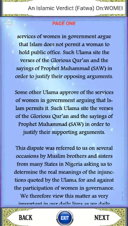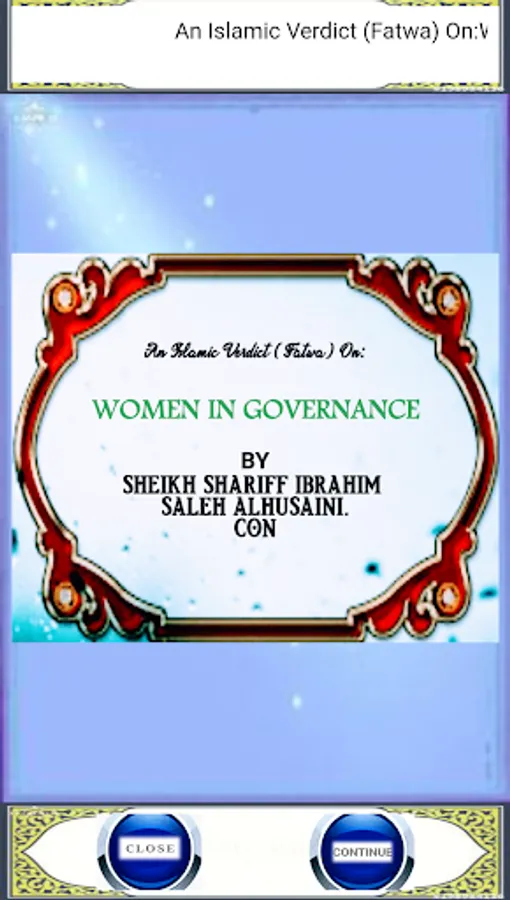 This Book is written by Sheikh Shariff Ibrahim Saleh Alhusaini, which gave a farawa on how a woman can be a leader with proves from the holy Quran and Hadith.