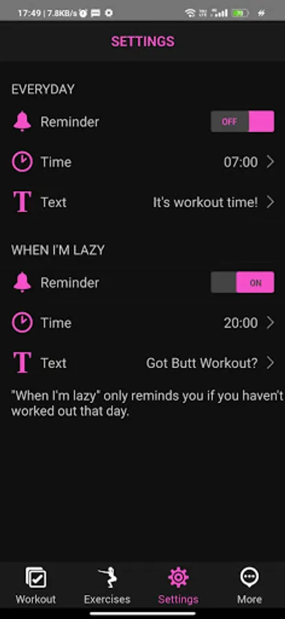 - Workout reminders so you never forget to work that booty!