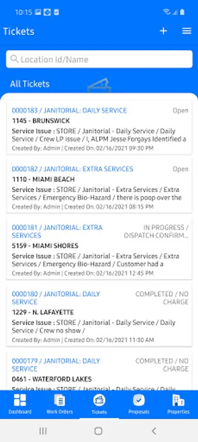 Manage Commercial Real Estate properties, including retail, office, hospitality, medical, institutional, and multi-family, thru real-time data. Which includes service tickets on recurring services to manage service complaints and corrections, Work Orders for project work such as break/fix projects or recurring contracted services such as preventative maintenance on equipment, and proposal management for capital intensive improvements to manage multiple bids, submission deadlines, bid award and project execution.