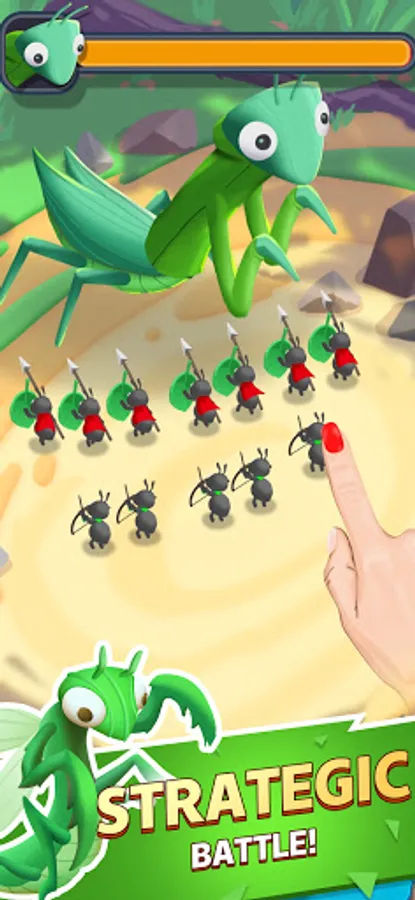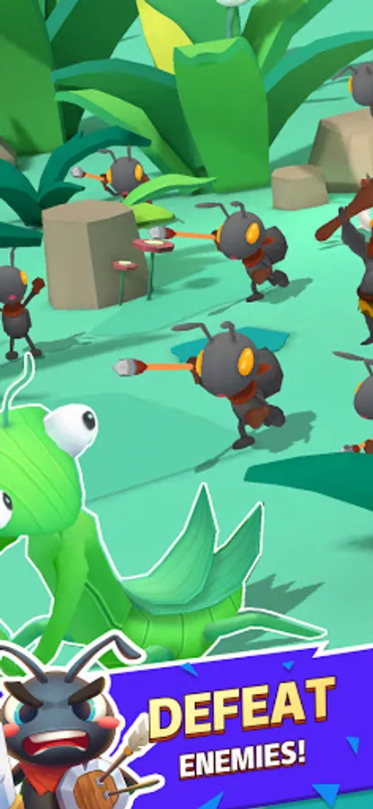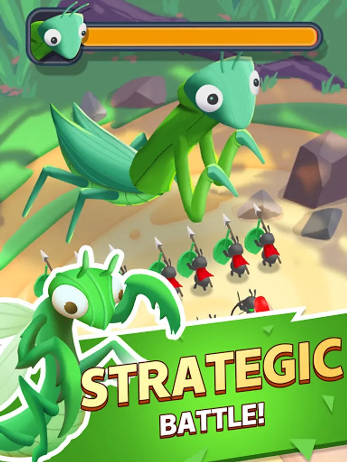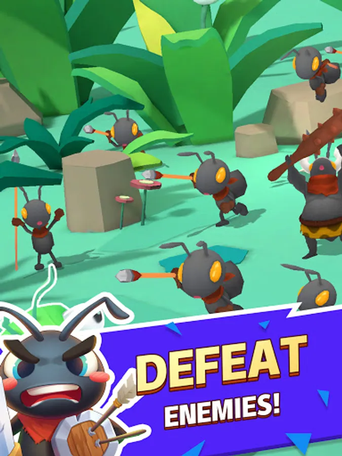Each ant fights differently and no battle is the same! Train and upgrade your ants army to take on challenging fights.