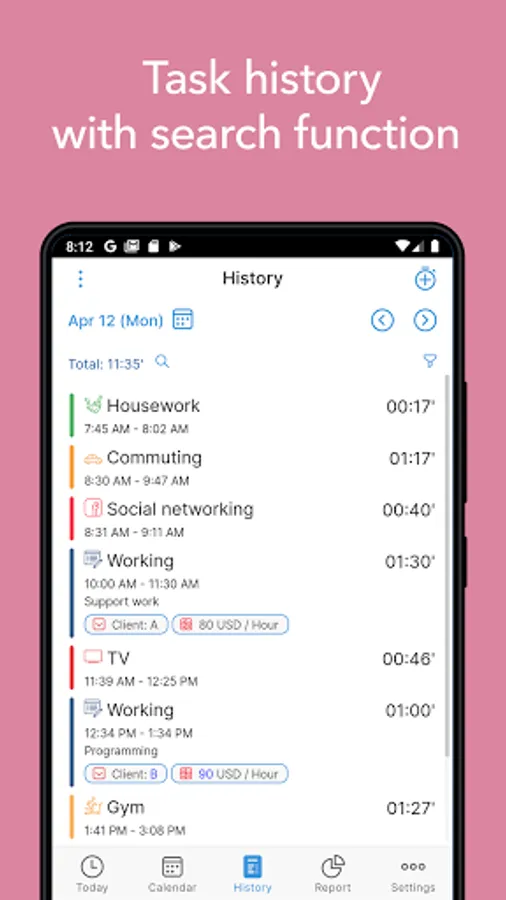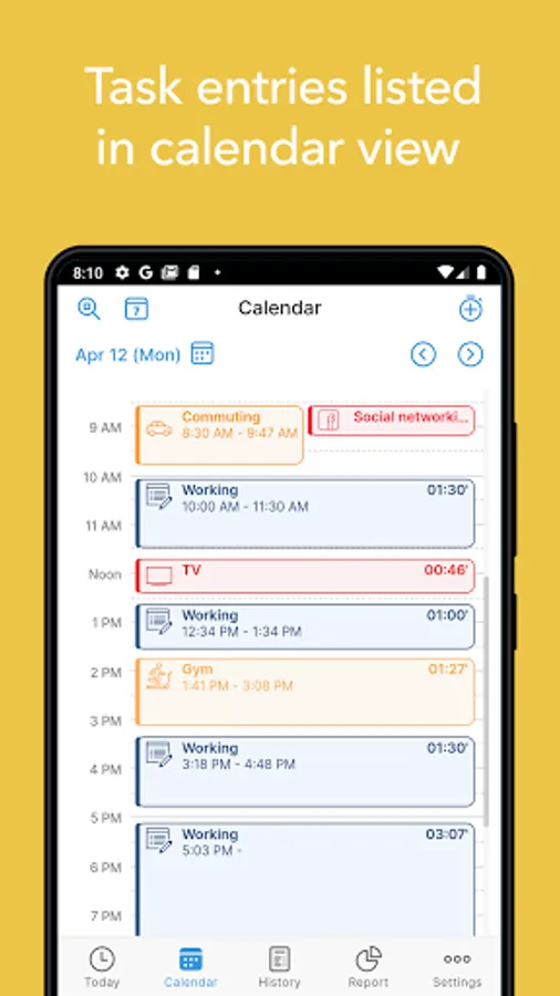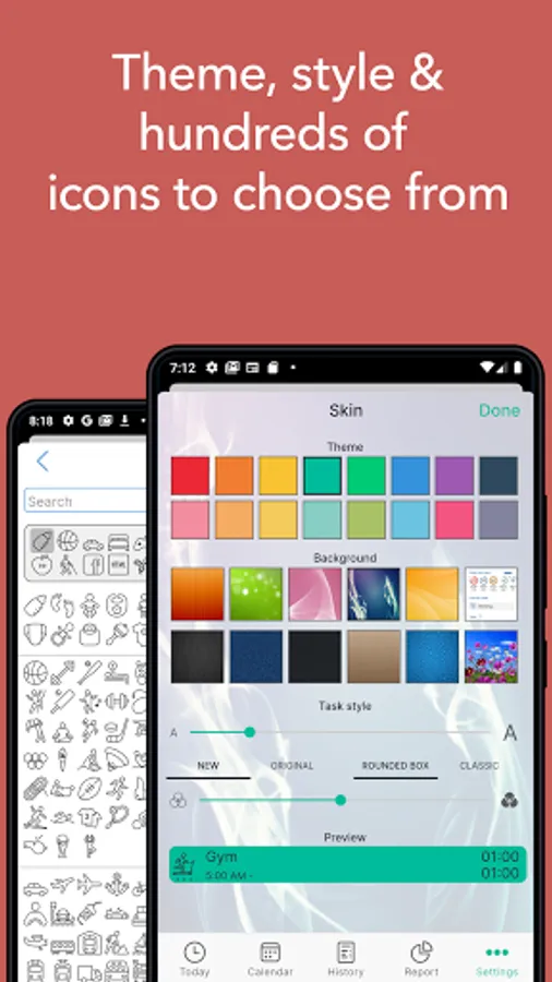 • Customization of activities with hundreds of unique icons to choose from. You can also color-code the activities for a personalized time-tracking experience.