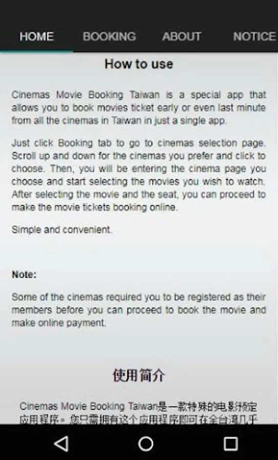 Cinemas Movie Booking Taiwan is proudly presented to you by WonderAppsLand. Thank you all for the supports. Hope you all enjoy using it.
