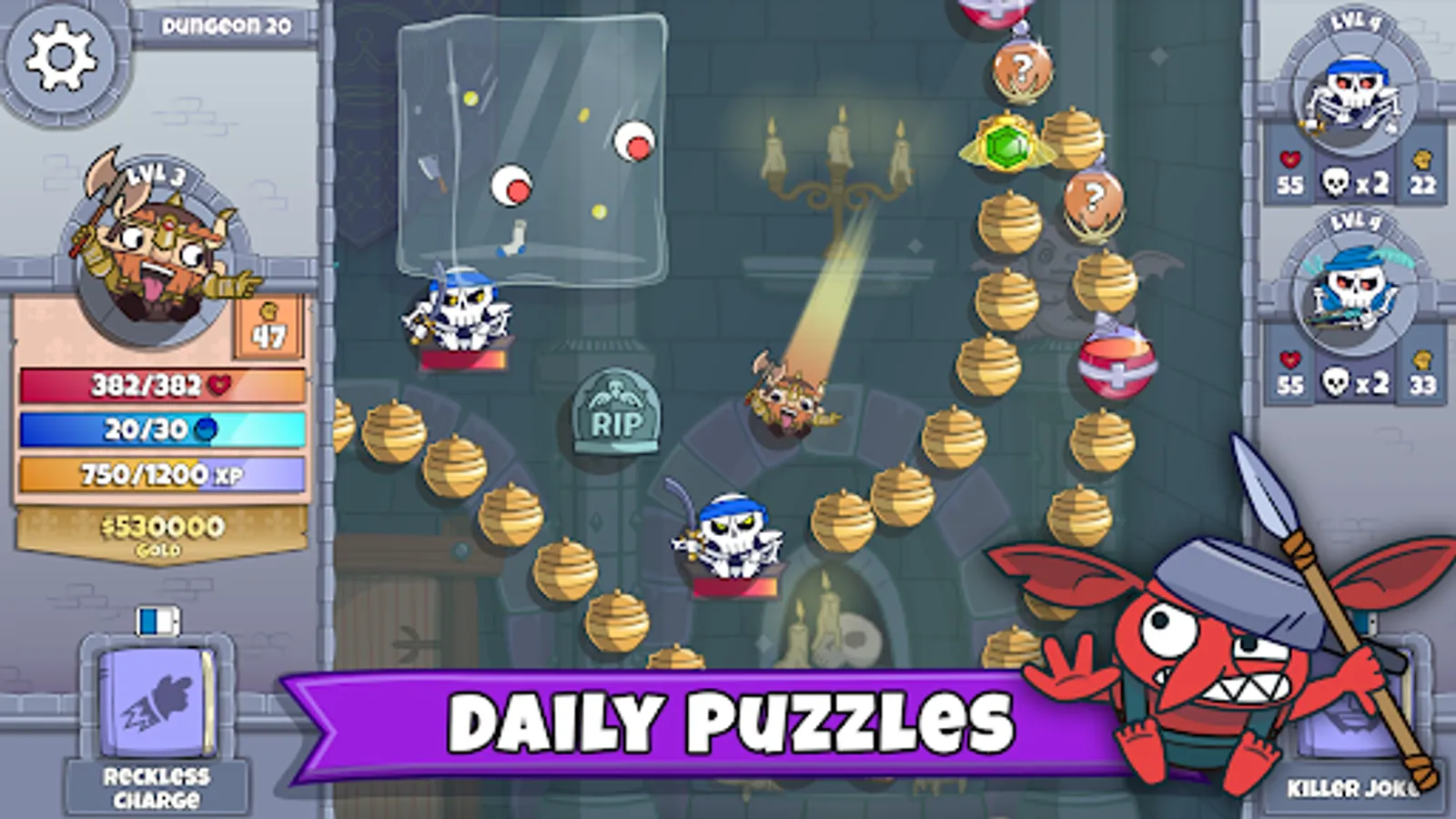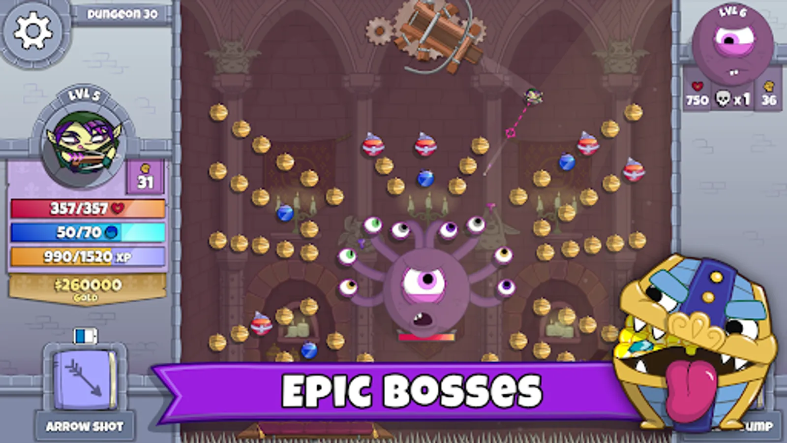 Bouncy Fun: Intuitive pinball physics-based gameplay like no other dungeon crawler.