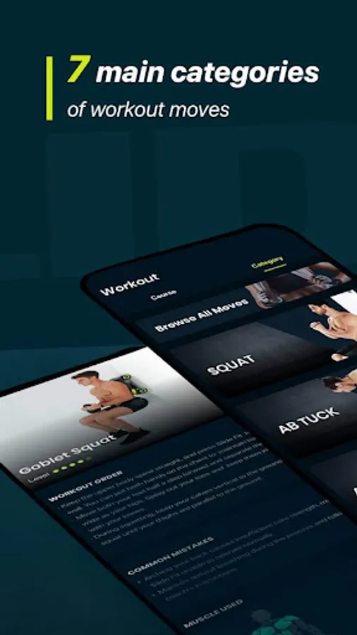 -7 main categories/Over 30 workout moves/Customized and efficient courses-