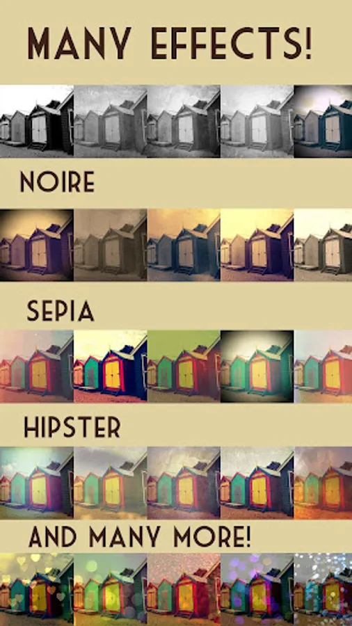 Take your android phone into the past with some of the most beautiful and unique vintage effects. Come see filters fine-tuned to perfection and inspired by old-school analog photography.