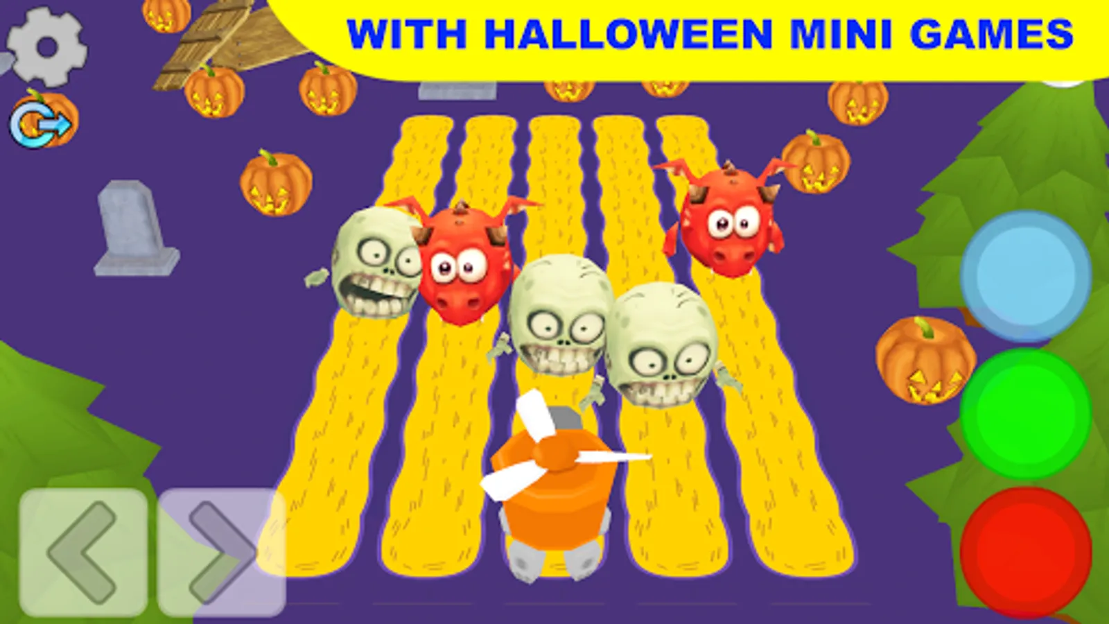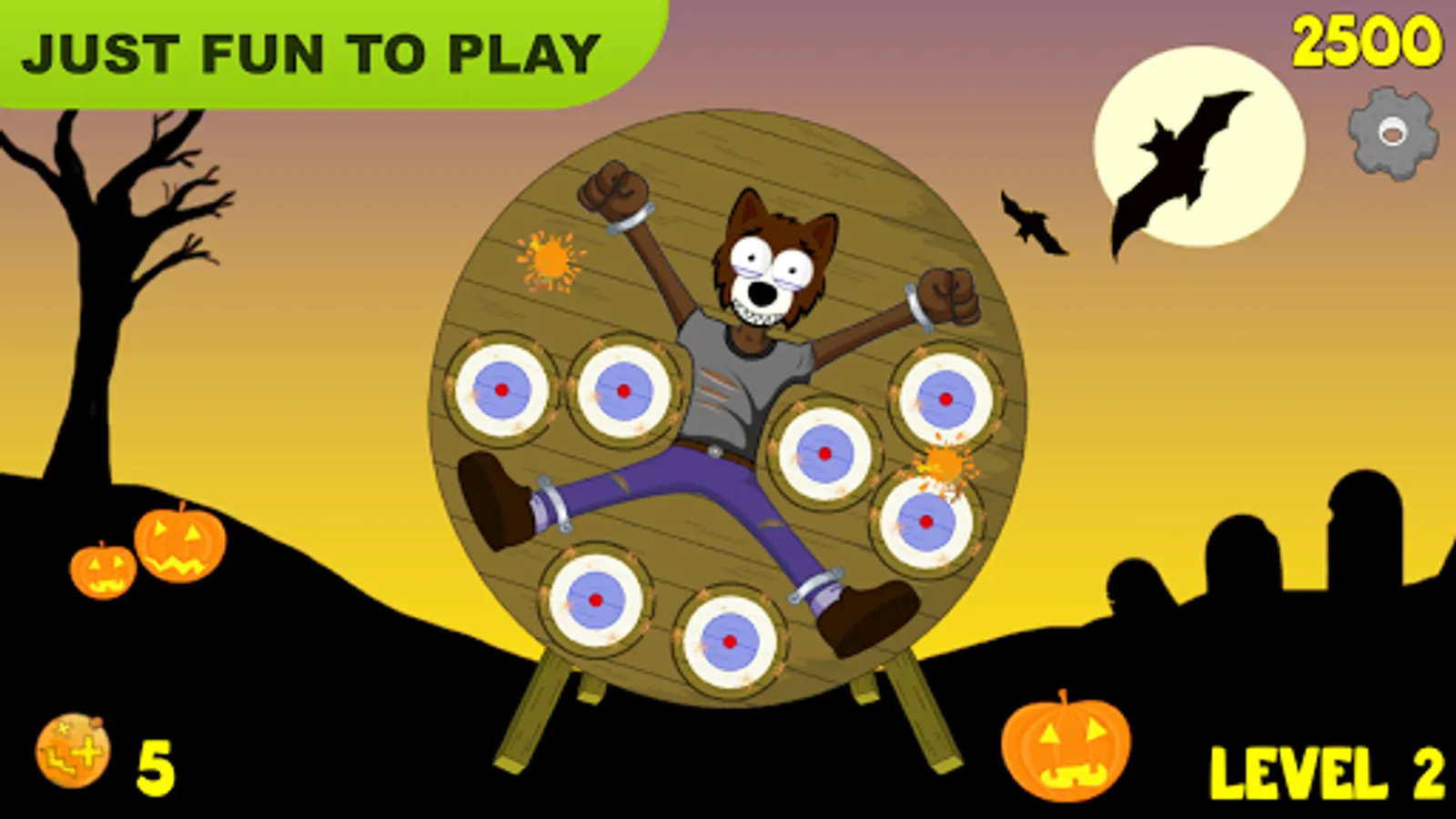 ★ Pumpkins throw: Hit the spinning targets with pumpkins without hitting the chained wolf man.