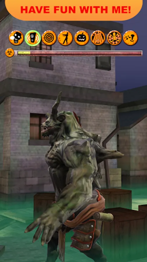 Talk to the scary monsters and they will repeat all you say with their dreadful voices. Touch them to see how they will react. Shoot the werewolf, monster and walking dead down before they get to close to you. Use special sounds to make them freak out and dance. Additionally it contains a lot of exciting inside games with many levels to play!