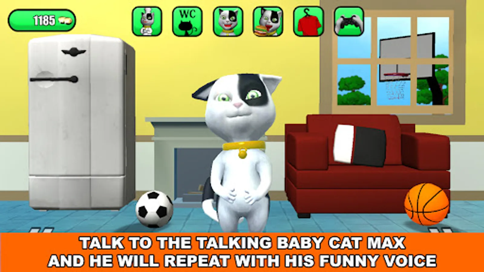 Meet Max Catomy the talking kitten. Max Catomy is a fun virtual pet that responds to your touch and repeats everything you say with his own hilarious voice. You can cuddle him, poke him pull his ears, play with his collar and much more. Like every little cat max is full of energy and loves to play all sorts of games but what he loves the most is soccer and basketball and he can barely wait to play them with you!