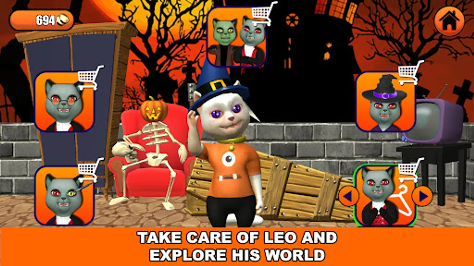 Meet Leo Catomy the talking stray cat in perfect Halloween mood. Leo is a fun virtual pet that responds to your touch and repeats everything you say with his own hilarious voice. You can pet him, poke him, pull his ears, play with his collar and much more. Leo loves to play and has got some cool games he can barely wait to play with you!