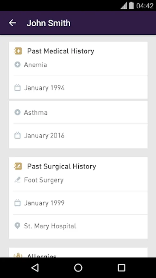 - An extensive list of diagnoses, surgeries, medications, allergies, and immunizations are available to aid in accurate documentation and spelling of your health history