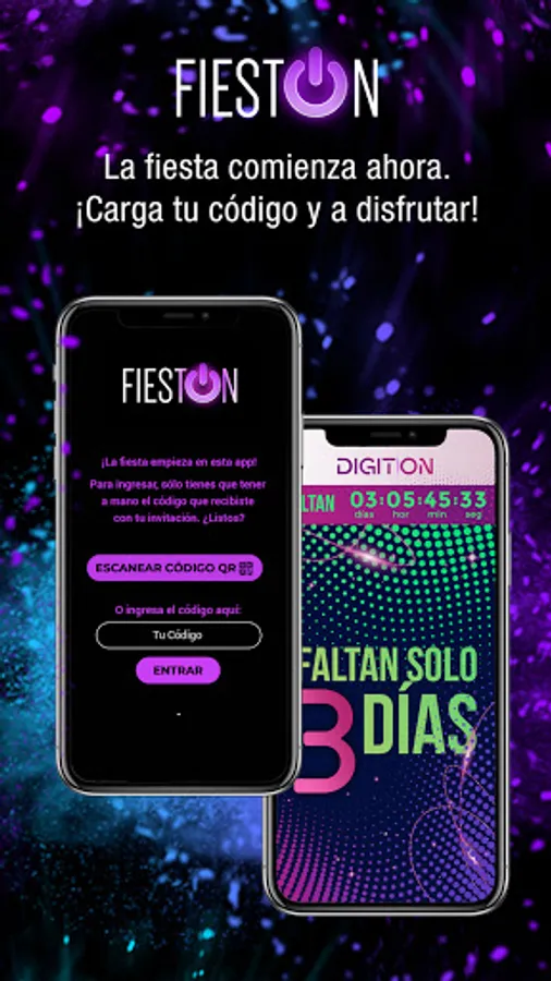 The FiestÓN APP is exclusive for events that have this technology. You can only use the APP with the code that is included in your invitation.