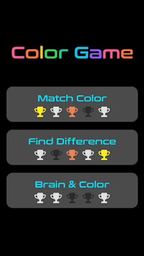 Color Game is a game for you to practice your sensitivity of color. ^^ Accept the challenges and get all trophies!!