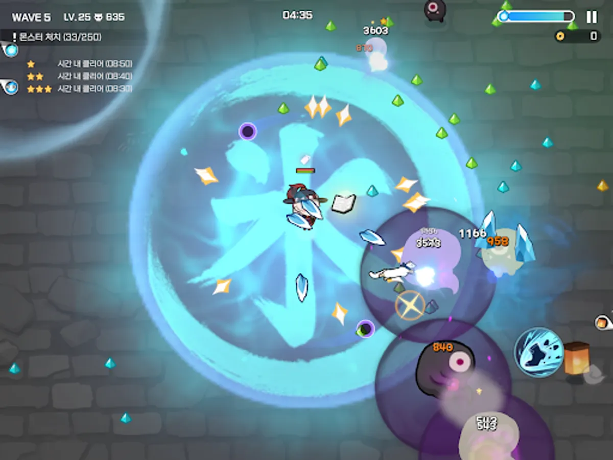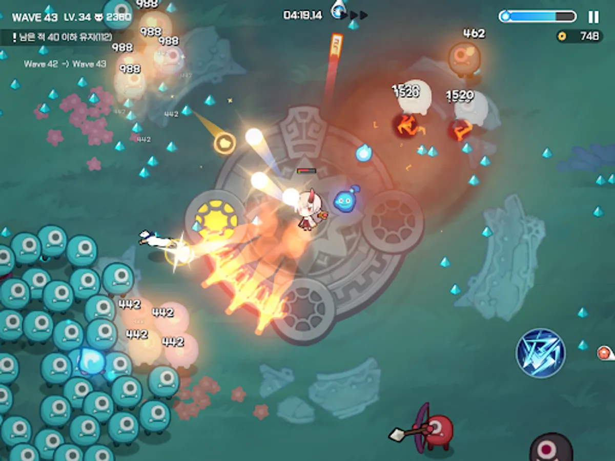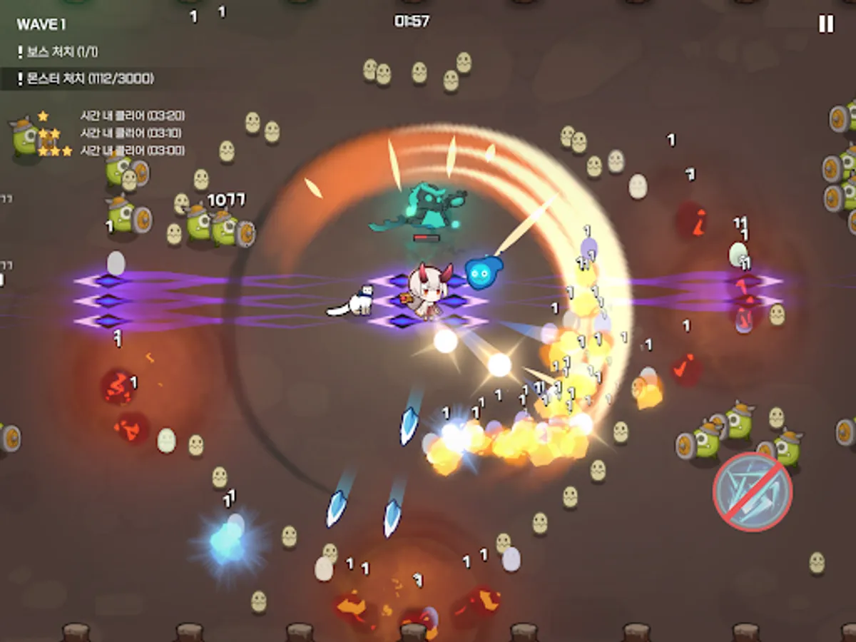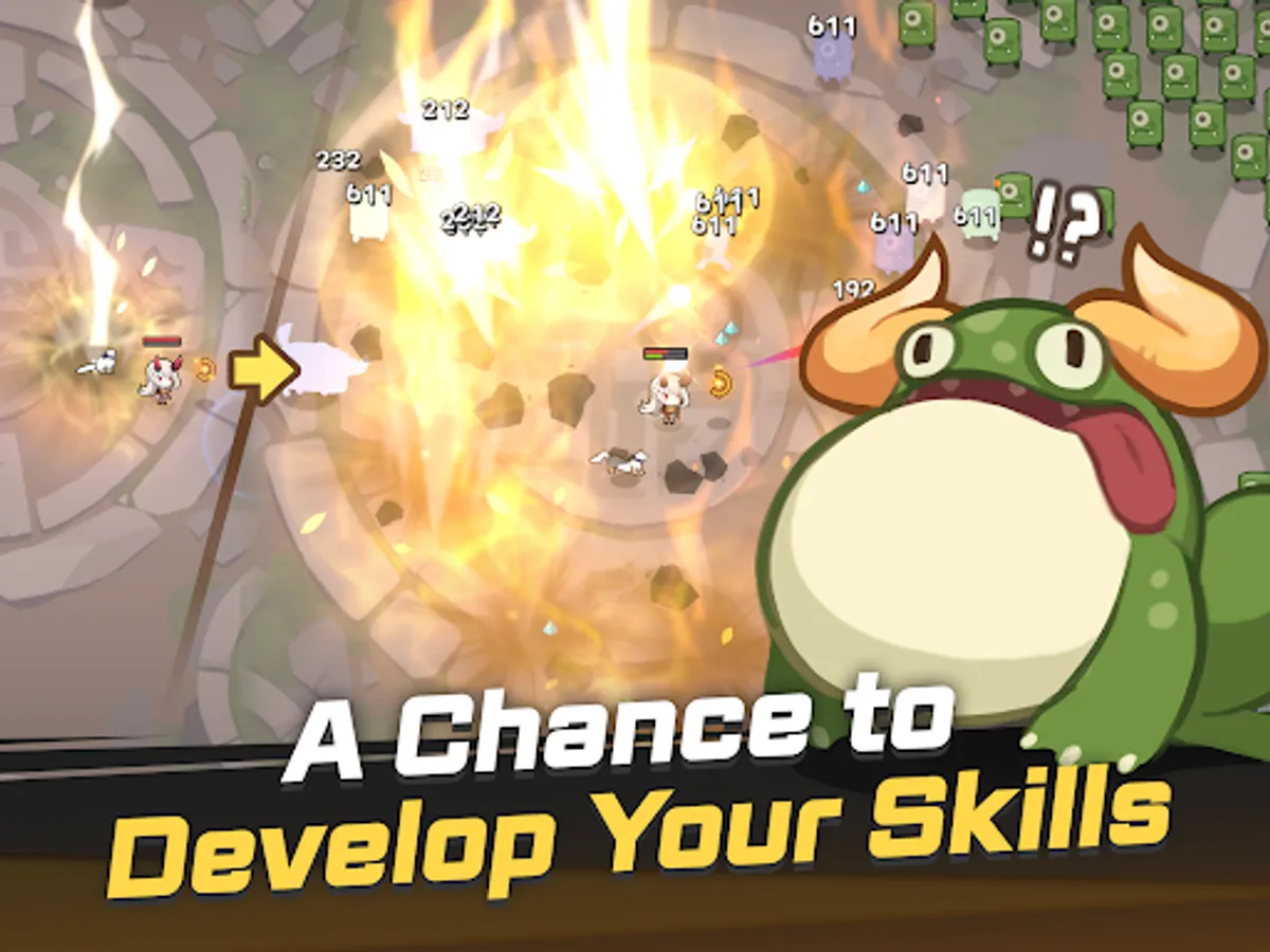 Use the attack skills and special skills in your equipment. Every weapon from Common to Mythic has one attack skill. If you look at the rank effect, you can see which element makes you more powerful when you attack. And the armor is equipped with special skills. A special skill that can absorb all EXP or completely eliminate enemies! Use it whenever you need help.