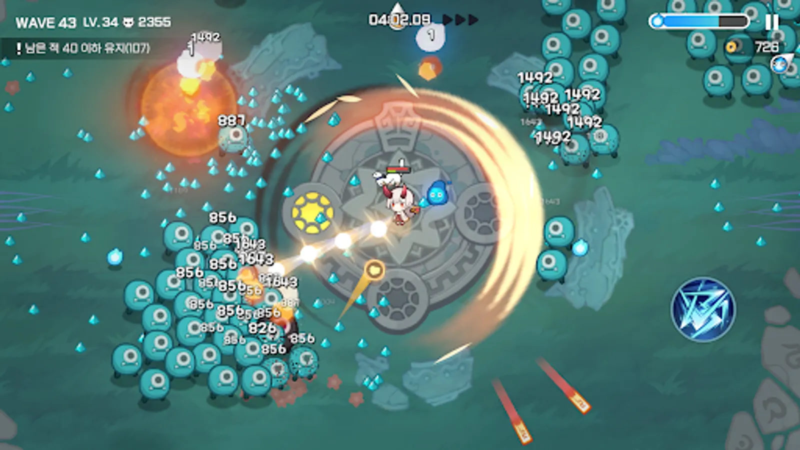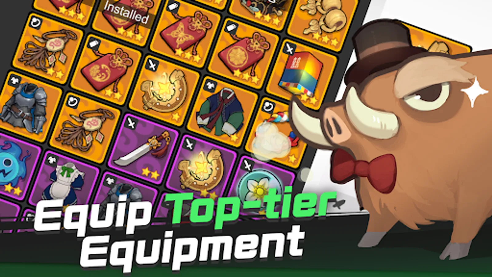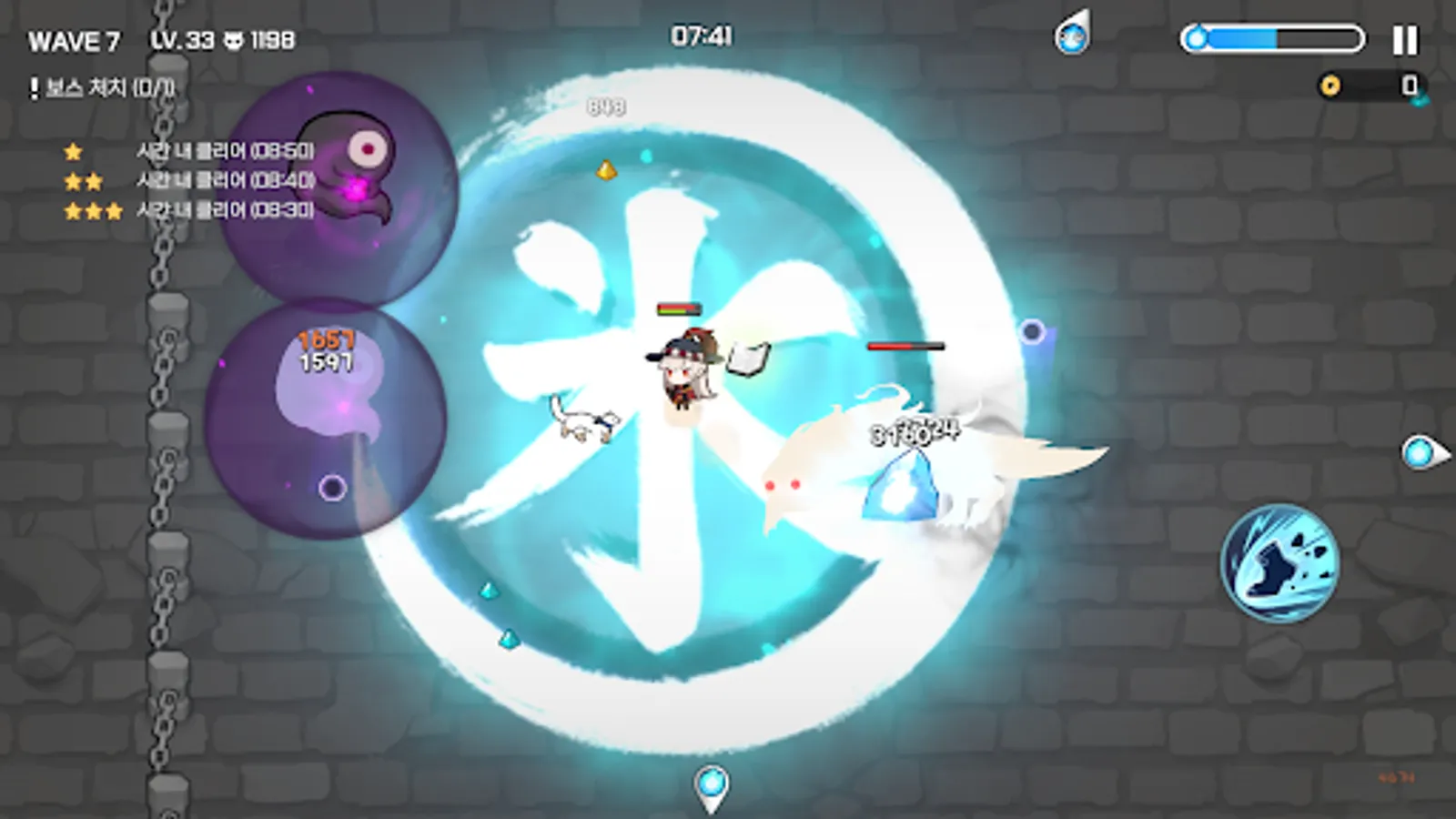 Use the attack skills and special skills in your equipment. Every weapon from Common to Mythic has one attack skill. If you look at the rank effect, you can see which element makes you more powerful when you attack. And the armor is equipped with special skills. A special skill that can absorb all EXP or completely eliminate enemies! Use it whenever you need help.