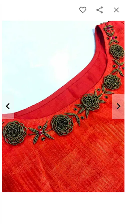 Latest and beautiful Embroidery Neck Designs for Ladies. More than 100 embroidery neck designs are available in this collection. Different types of neck designs for different dresses like Maggam work neck designs, Aari work neck designs, Neck line design, Neck design for kurtis and Salwar neck designs are included in this collection. Favorite embroidered neck designs can be selected and shared with friends and family using various social networks. Each neck design with embroidery work can be zoomed in by double tapping on it for a clear look.