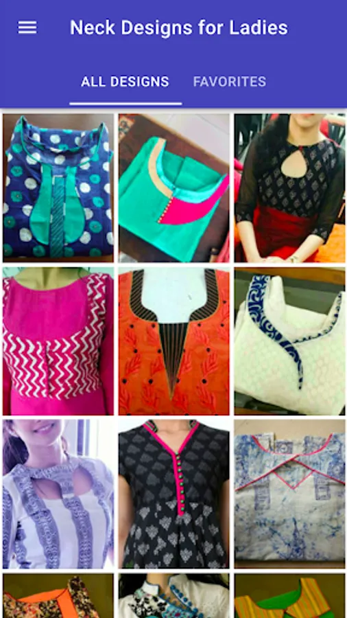 Beautiful dress neck designs for ladies. More than 100 neck designs are available in this app. Different types of dress neck designs like Kurti neck line designs, Salwar neck designs, Collar neck, Boat neck, Anarkali neck designs and Cotton dress neck designs for girls are included in this collection. New, attractive and trendy neck designs that are suitable for festivals, parties and weddings can be found in this app.